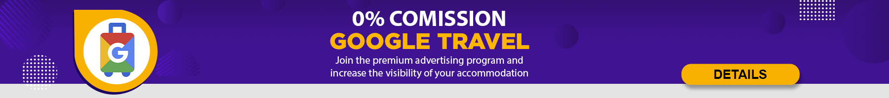 Syncbeds, as an exclusive Google Travel partner gives you the opportunity to take advantage of the benefits of advertising your accommodation without any additional fees in the form of a commission. With our help, you can increase the booking and visibility of your accommodation with one of the world's leading partners in the travel industry - Google Travel. Syncbeds is an exclusive Google Travel partner. Place your ad and take advantage of the convenience of advertising accommodation without paying a commission.